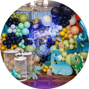 Создание сказочной атмосферы с помощью декораций. Фотозона с любимыми героями, масштабный каскад из шаров и сервировка стола в тематике праздника — каждая деталь собирается с учетом общей концепции.